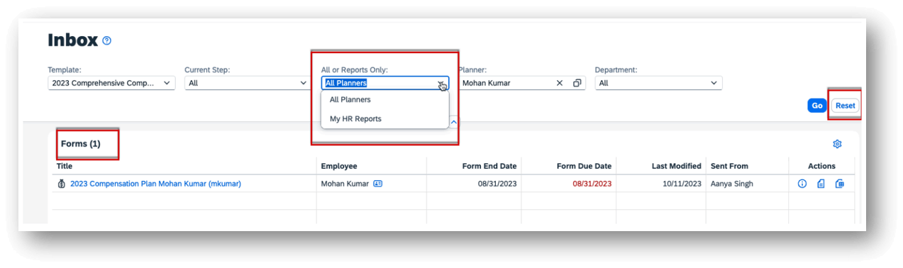 You see the My Direct Reports, My Matrix Reports, and My HR Reports filter options in All or Reports Only only when relevant to your role.